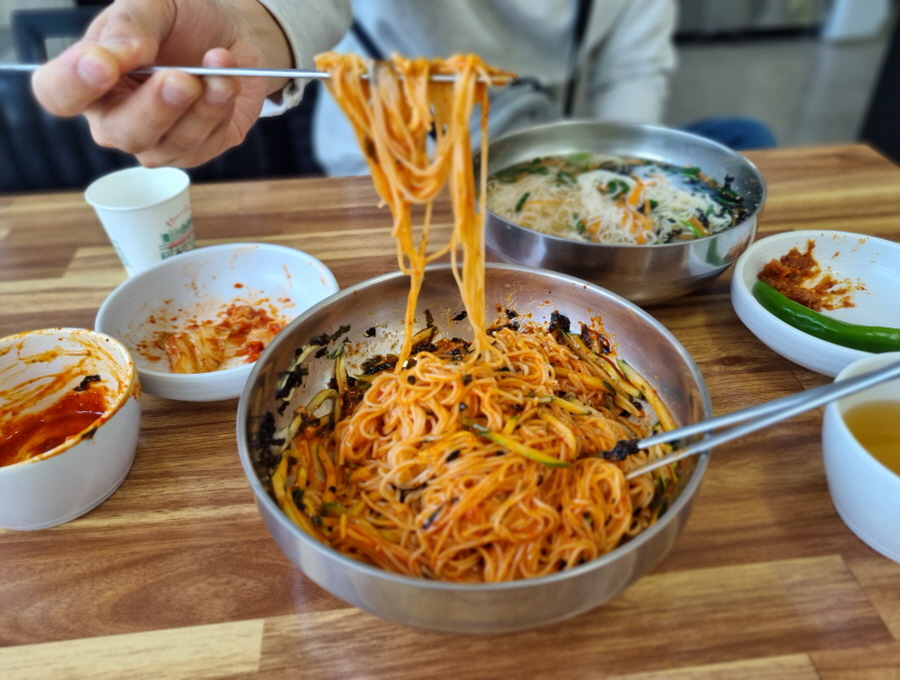 열심히 비비고 나니 어째 더 푸짐해 진 것 같은 느낌! 개인적으로 저는 꼬들한 면을 좋아하는데, 여기는 잔치국수나 비빔국수 모두 다 꼬들꼬들하니 식감이 좋더라고요. 아낌없이 넣어 주신 채소 고명 덕분에 알록달록해져서 더 맛깔나 보여요~