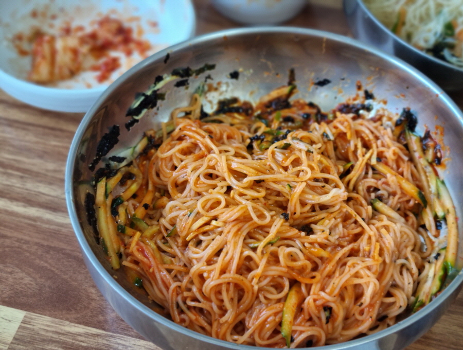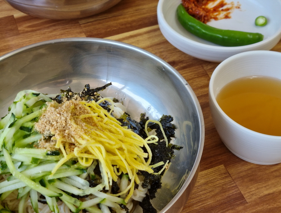 비빔국수 양념장 진짜 중요한 거 아시죠? 팔도 비빔면 비빔장을 따로 팔 정도로 한국인들의 비빔면 사랑은 어마무시하죠 ㅎㅎ 저도 항상 사 놓고 자주 해 먹고는 하는데, 여기 비빔장이 진짜 맛있더라고요. 고소하고 새콤 달콤해서 양념장을 다 넣었는데도 짜지 않았어요.
