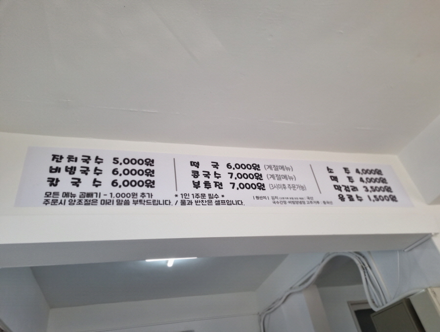원래는 잔치국수 4000이었는데, 물가가 올라감에 따라 간판명도 5000으로 살짝 바뀌셨어요 ㅎㅎ 그렇지만 여전히 가격은 저렴하다는 거! 요즘 한 끼 사 먹는 가격이 너무 비싸져서, 만 원 이하 메뉴가 잘 없더라고요. 대구 수성구 상동 잔치국수 5000은 지갑 사정이 가볍더라도 부담 없이 방문할 수 있을 듯 해요.