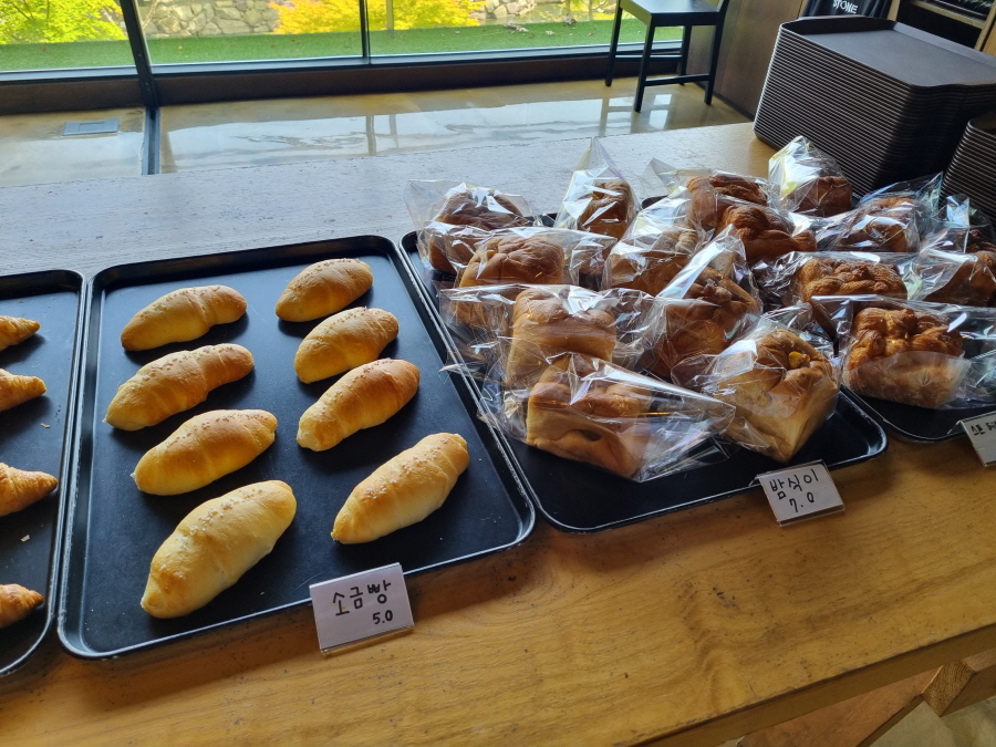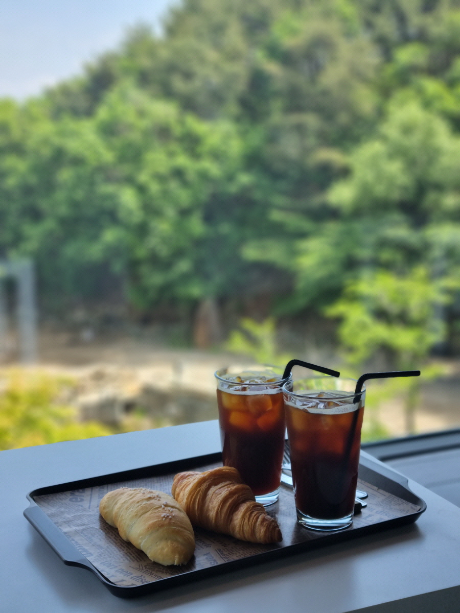 갓 나온 빵은 역시 맛있습니다 ㅎㅎ 이렇게 예쁜 뷰를 보면서 아침에 마시는 커피와 빵이라니, 이 자체만으로도 힐링 그 자체!