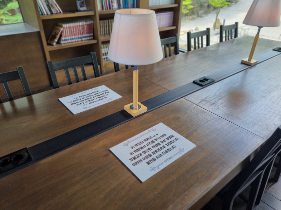 대구 근교 대형카페 팔공산 군위 카페스톤의 2층은 노키즈존입니다. 1층과 외부에서는 아이들, 반려견들과 함께 시간을 보내실 수 있어요. 아무래도 외부 테이블이 있고 소품들도 많다 보니까 아이들에게는 위험할 수도 있으니까요.
